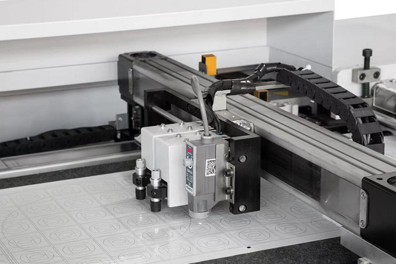 La machine de découpe numérique d’étiquettes utilise un entraînement par servomoteur avec des lames en acier au tungstène, permettant une vitesse de fonctionnement jusqu’à 2 m/min.